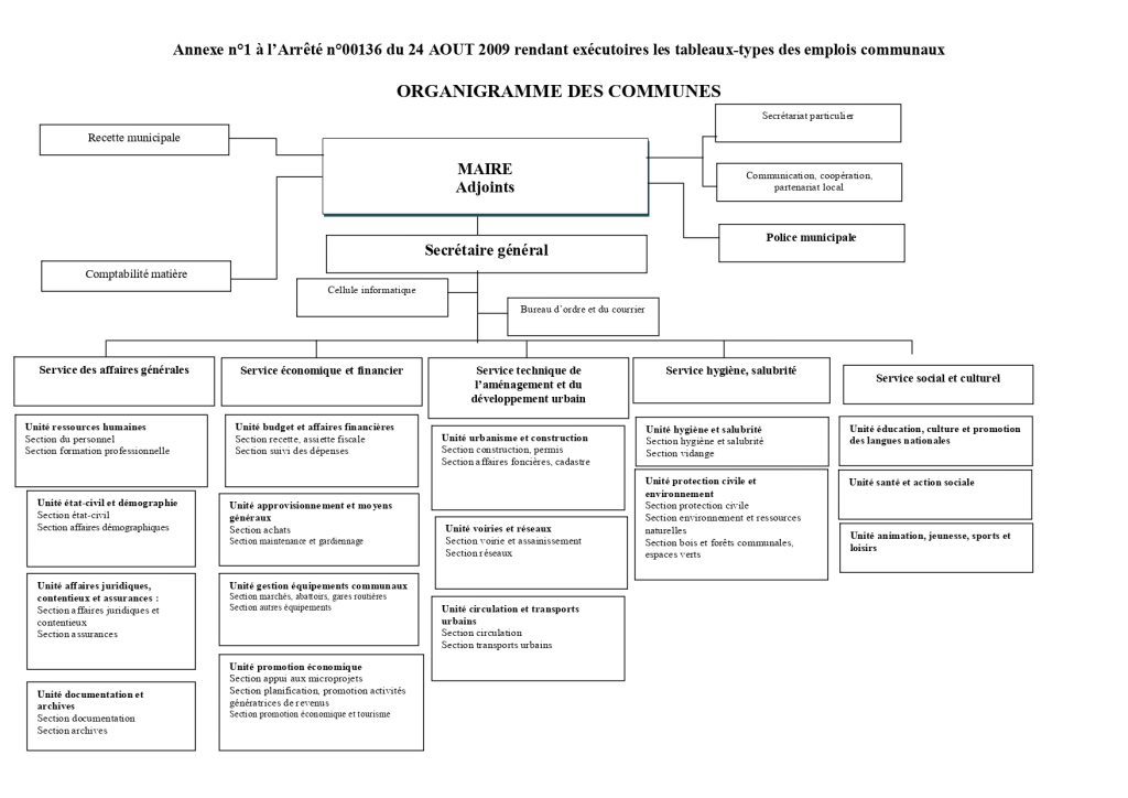 L’organigramme fonctionnel de la commune montre certaines limites comparées à l’organigramme type des communes.